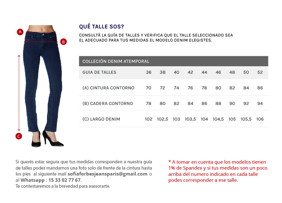 - Talles del 36 al 52 – Modelo para altas o petite y mediana estatura